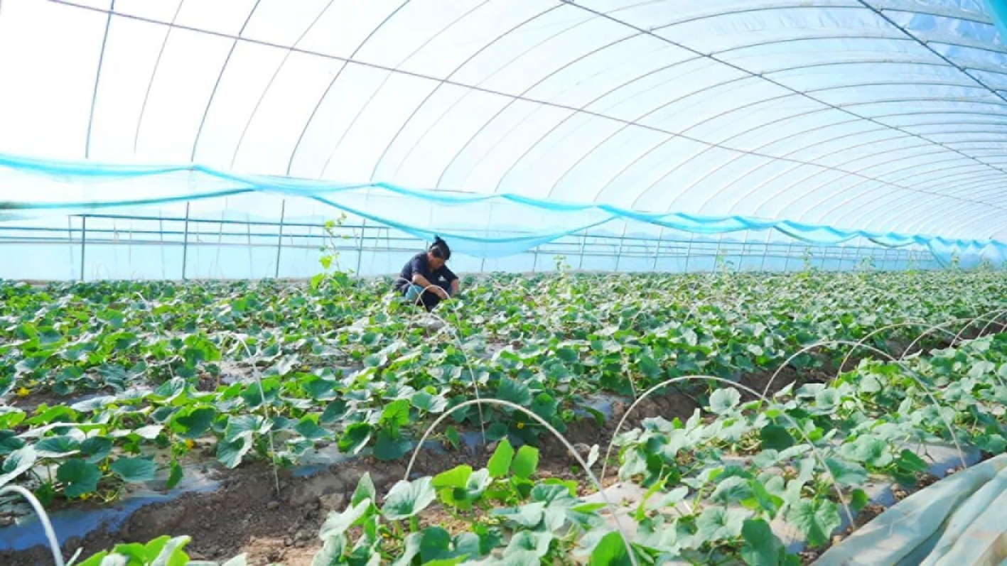 近日,笔者在五原县胜丰镇新红村看到,14栋钢架拱棚整齐排列,棚内温润适宜,一棵棵灯笼红香瓜苗青翠欲滴,村民们正忙着开展管护工作。为切实提升香瓜品质,提早上市时间,棚内采用了“三膜覆盖”种植技术,通过精准调控棚内温湿度、保温保墒,助力香瓜稳健生长,为实现优质早熟、丰产增收奠定了坚实的基础。