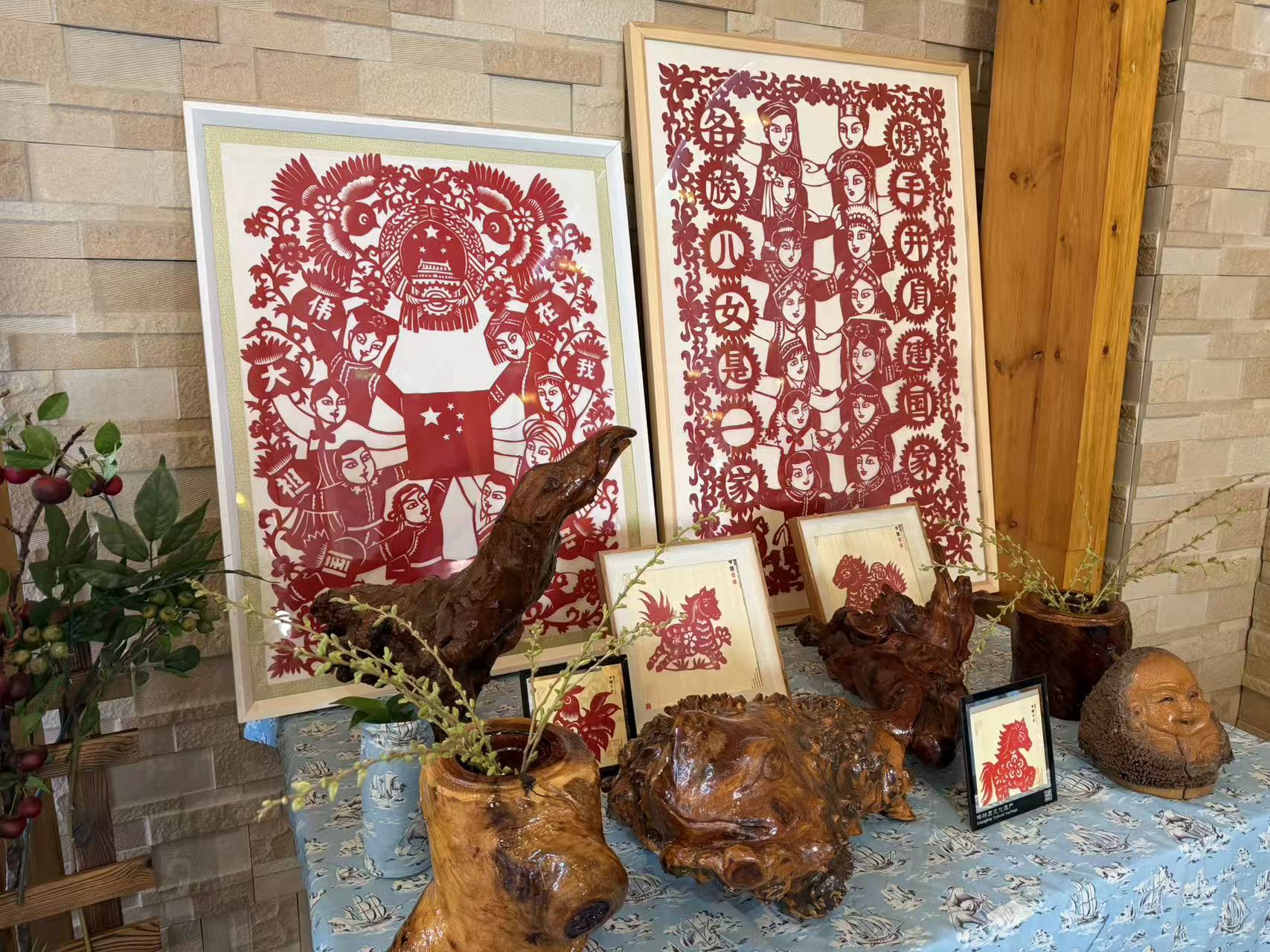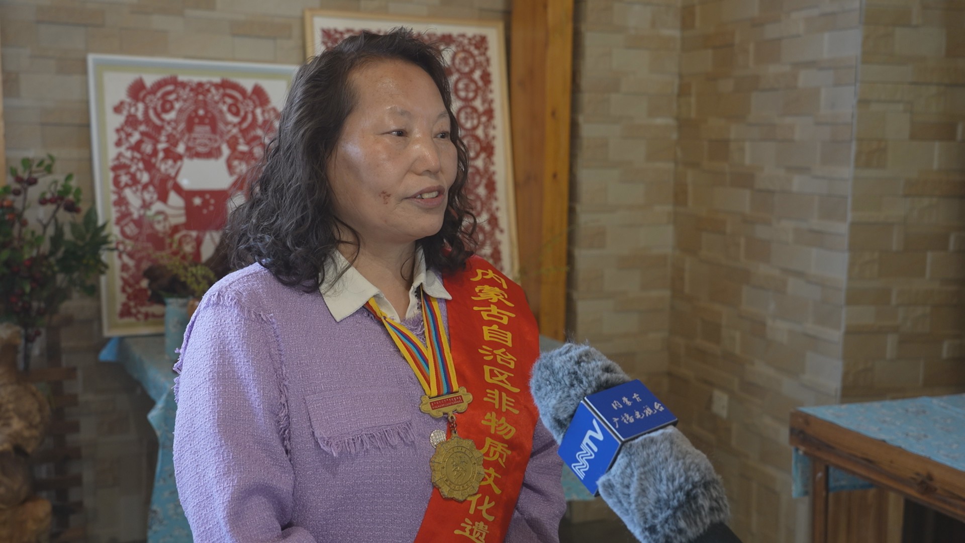 自治区级非物质文化遗产突泉剪纸项目代表性传承人 赵日霞:带来的几幅剪纸作品是体现民族团结的,有一幅是《各族儿女是一家 携手并肩建国家》。在大家一边创作一边欣赏的过程中,展示民族团结精神,真正地感受到民族团结一家亲的这种亲情和友好。