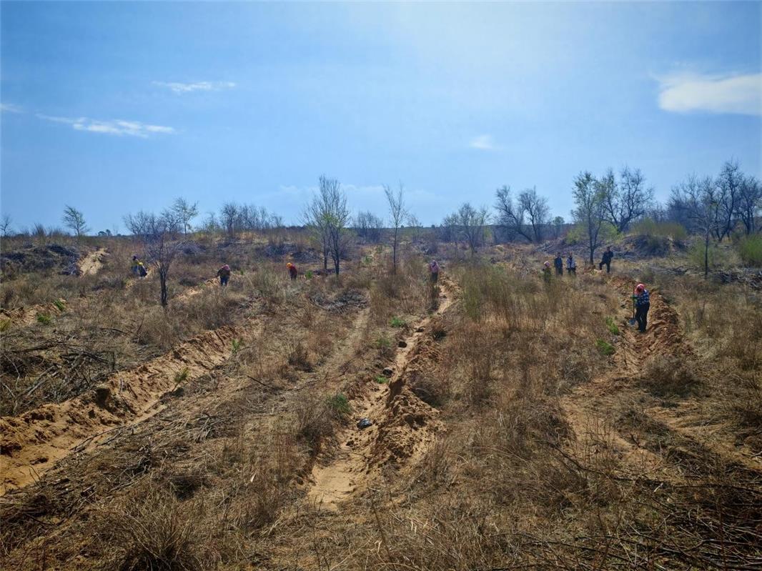 四月的春风吹到库布其沙漠边缘,鄂尔多斯市准格尔旗“三北”工程库布其沙漠生态巩固提升区林草湿荒一体化保护修复项目陆续开始实施。4月22日,在库布其沙漠东段南缘布尔陶亥国有治沙站老井作业区,十几名村民开启了一天的植树造林工作。