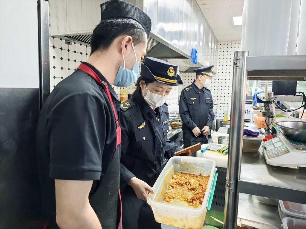 检查现场,执法人员重点对部分入网商户的后厨及操作区域进行细致排查,一方面核查入网商户食品经营许可证的持有情况及经营范围,检查平台证照公示是否规范,并逐一核对从业人员健康证信息。另一方面,查看后厨环境卫生是否达标、食品原料索证索票及储存条件是否合规、加工操作流程是否规范。对检查中发现的问题,当场下达整改通知,明确整改要求、时限及具体标准,督促经营户立即整改、规范经营。执法人员同步检查各外卖平台管理责任落实情况,对平台入网商户资质审核不严、管理缺失等行为依法严厉查处,推动平台履行主体责任。
