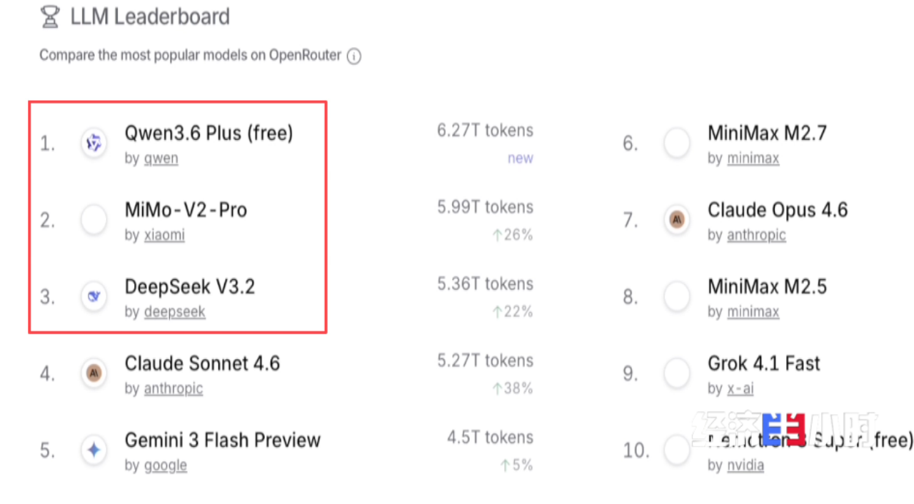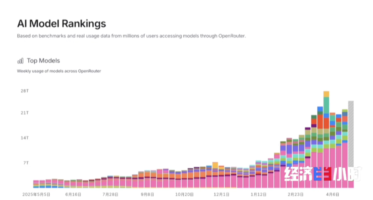 OpenRouter数据显示,今年3月Token消耗量位居全球前十的模型,有五款来自中国。