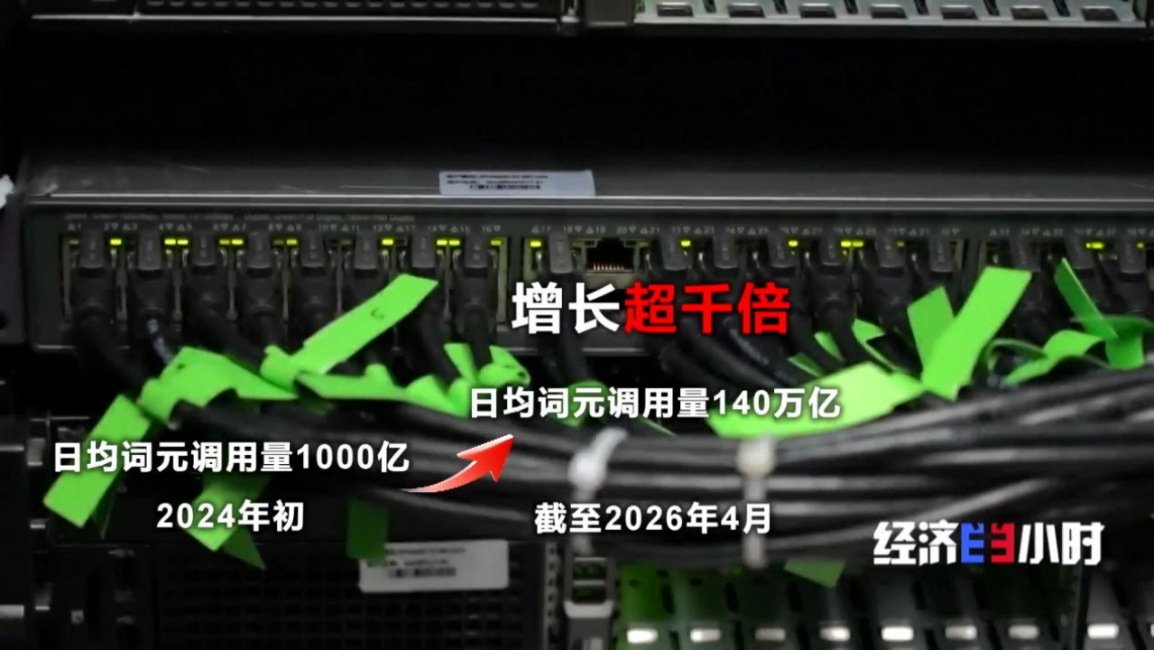 截至今年4月,全国在用算力中心机架总规模超1200万标准机架;日均词元调用量突破140万亿,两年间增长超千倍。